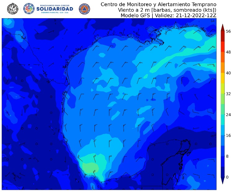 Motivo por el cual, piden tomar precauciones, ya que el sábado 24 de diciembre predominará ambiente muy fresco en todo el municipio gracias al arribo de una masa de aire polar; al respecto, se pronóstica temperatura mínima de 17° a 19 °C y temperatura máxima de 22 ° a 25 °C. También habrá posibilidad de precipitaciones fuertes en Playa del Carmen, Nuevo Noh-Bec y Puerto Aventuras.