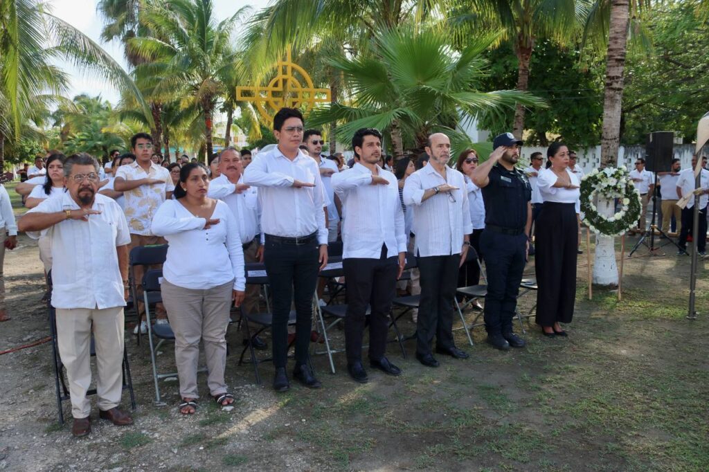 Durante la ceremonia se realizaron honores y el izamiento de la bandera, se entonaron los himnos Nacional Mexicano y a Quintana Roo y se depositó una ofrenda floral.