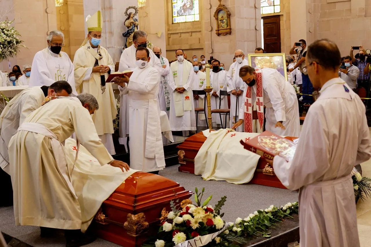 Chihuahua (Marcrix Noticias).- Los cuerpos de los sacerdotes jesuitas, Javier Campos Morales y Joaquín Mora Salazar, fueron sepultados hoy, 27 de junio de 2022, en el atrio de la parroquia de San Francisco Javier, en Urique, Chihuahua.