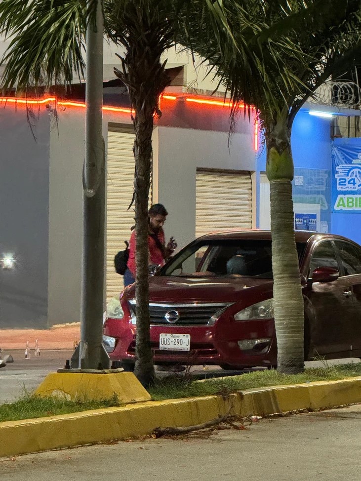 El vehículo es un Nissan Sentra color guinda con placas de circulación UUS 290J del estado de Quintana Roo y al parecer presenta impactos de bala, que le propinaron los delincuentes en la persecución.