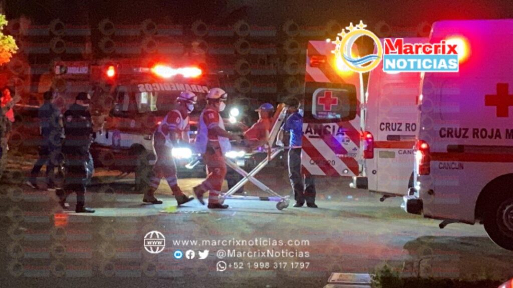 Personal de la Policía Quintana Roo llegó al lugar para resguardar la zona, mientras paramédicos estaban auxiliado a los lesionados para llevarlos a un hospital.