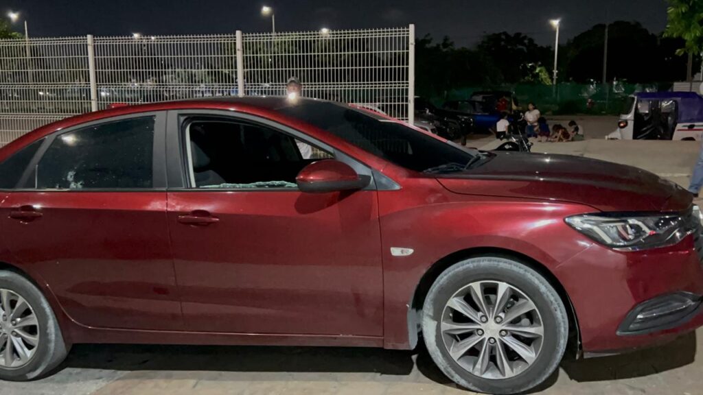 El automóvil presenta impactos de bala en ambos costados, por lo que se infiere que fue atacado por dos motociclistas en movimiento.