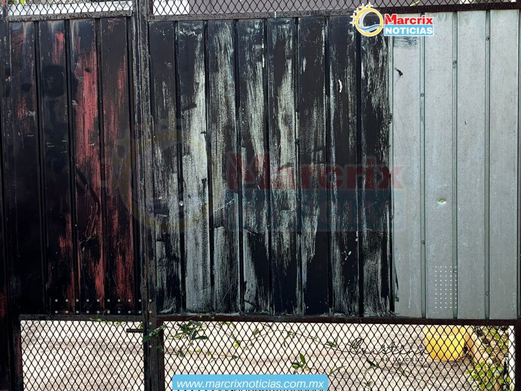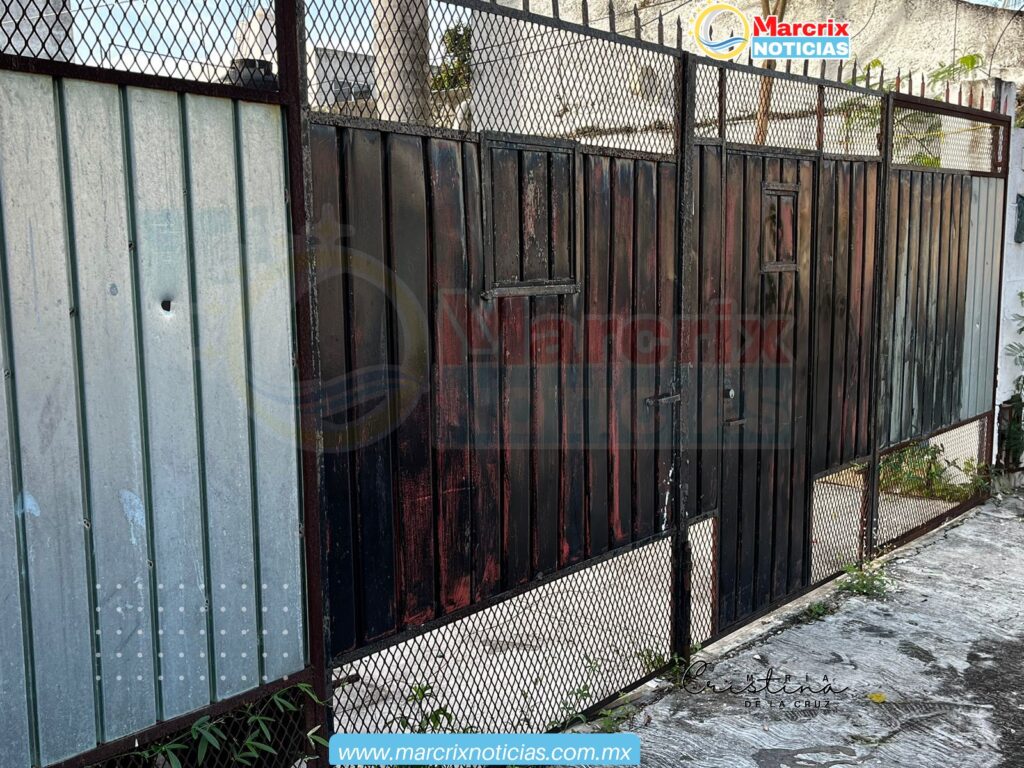 La fachada de la casa con portón de herrería color negro también presentaba daño a causa de los balazos recibidos.