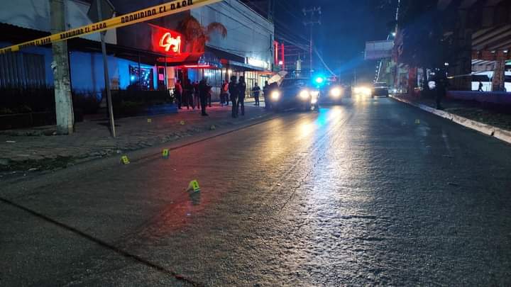 Playa del Carmen(Marcrix Noticias).- Una lluvia de balas es la que se presentó durante la noche de ayer en la colonia Ejidal de Playa del Carmen, donde sujetos a bordo de una motocicleta atacaron a balazosel bar “El Esqueleto”, donde resultó gravemente herido el cadenero del establecimiento.