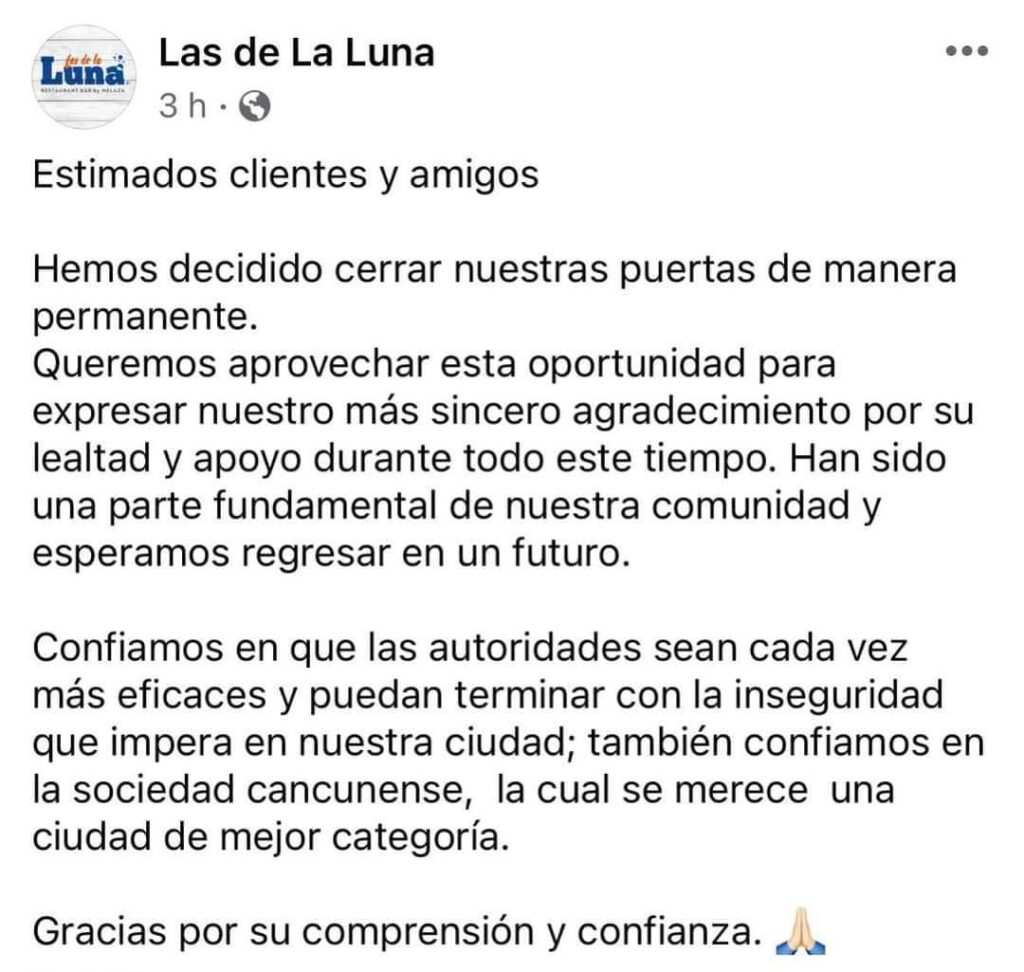 Lo cierto es que esto provocó una gran molestia entre los cancunenses, quienes piden a las autoridades tomar cartas en el asunto para evitar que los negocios sigan cerrando a causa de la inseguridad.