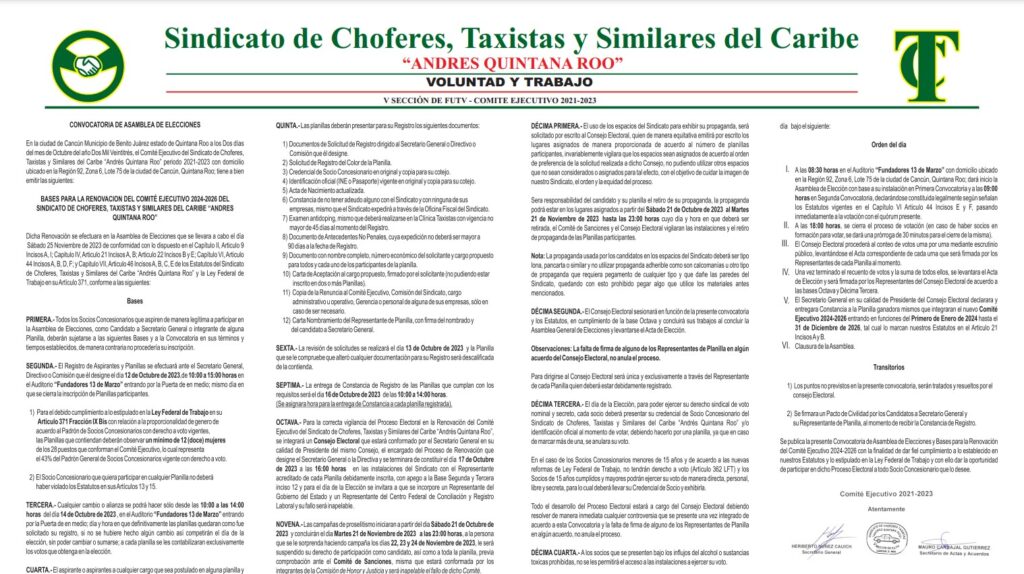 Cancún (Marcrix Noticias).- Se ha iniciado la batalla por el Sindicato de Taxistas de Cancún, donde al menos 3 mujeres buscarán la dirigencia; Alejandra Aguilar, Erika Castillo y Ruth Salazar, pero también está inscrito Salomón Alonso Muñoz.