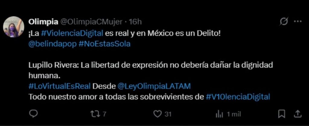 La firma legal destacó que este tipo de casos deben ser tratados con perspectiva de género y apego a la Ley Olimpia, que protege a las mujeres frente a la violencia digital.