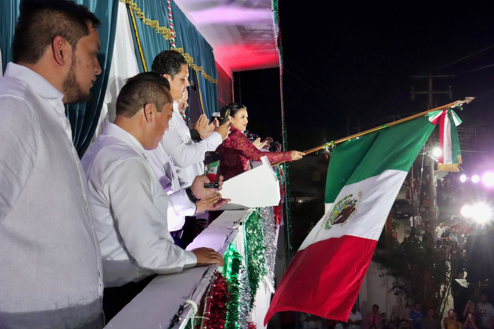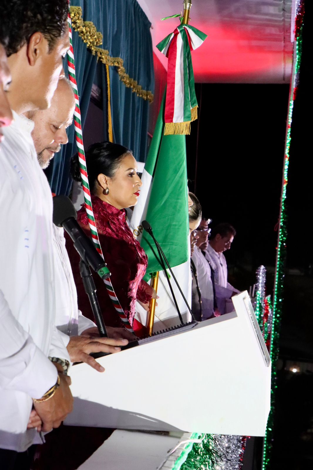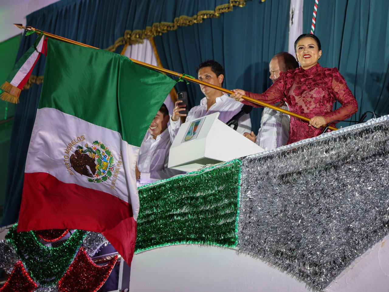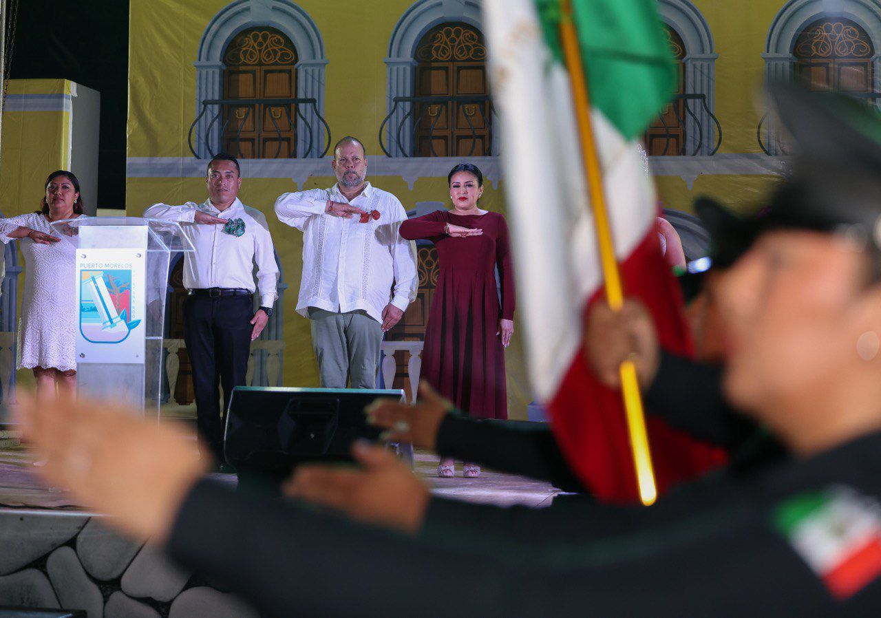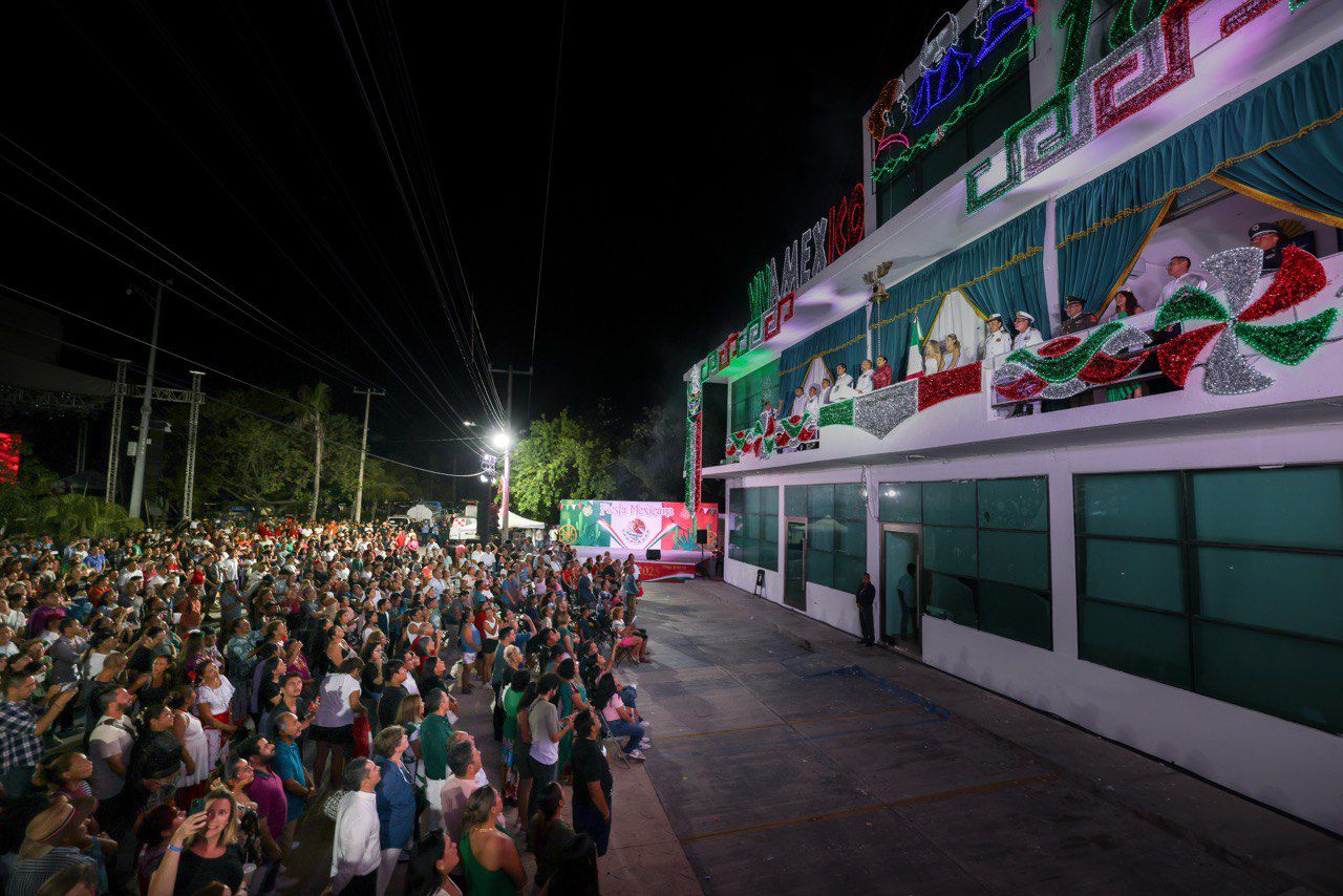Puerto Morelos (Marcrix Noticias)- Mas de 5 mil ciudadanos de Puerto Morelos vibraron en la gran fiesta mexicana celebrada en Puerto Morelos en el marco del 215 Aniversario del Grito de Independencia encabezada por la presidenta Blanca Merari Tziu Muñoz.