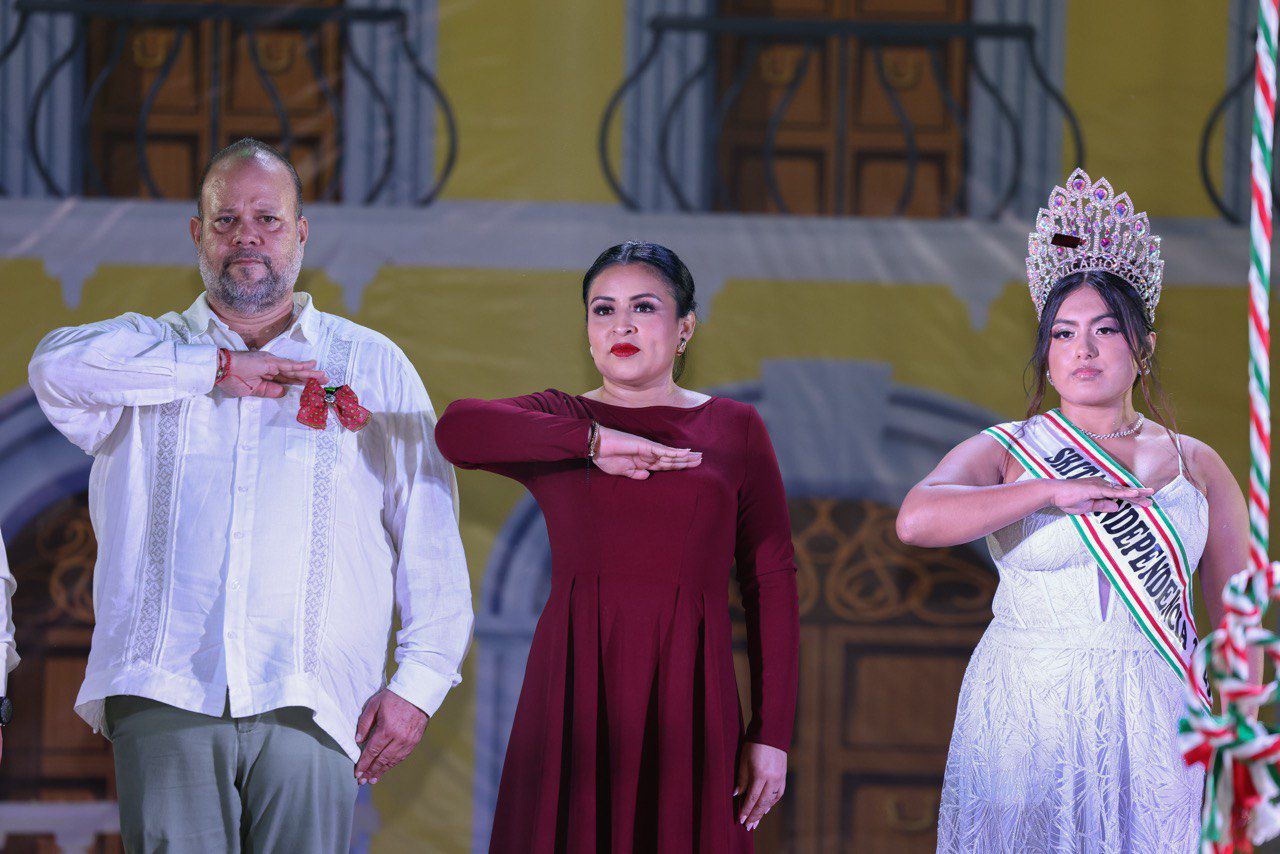 Desde el Palacio Municipal en la cabecera municipal, ubicado en la avenida Joaquín Zetina Gasca, la alcaldesa llevó a cabo el acto protocolario, dónde se realizaron los honores a la Bandera, y recibió el lábaro patrio, acompañada de funcionarios, regidores e invitados especiales.