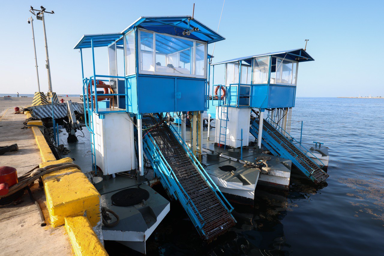 Posterior a la supervisión en el buque sargacero Natans, la secretaria de Medio Ambiente junto con la presidenta Blanca Merari, verificaron el funcionamiento de la sargacera a través de las bandas que levantan la macroalga para pasar las áreas de escurrimiento en redes y luego trasladarlas a contenedores para enviarlas a su destino final.