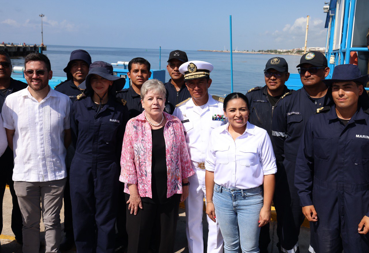 Durante las actividades, Alicia Bárcena, se congratuló por el trabajo que se lleva a cabo en todo el estado en esta estrategia contra el sargazo, que encabeza la gobernadora Mara Lezama, junto con la SEMAR, con la suma de los municipios como Puerto Morelos, además de la iniciativa privada ante este fenómeno natural que cada año se hace presente en Quintana Roo.