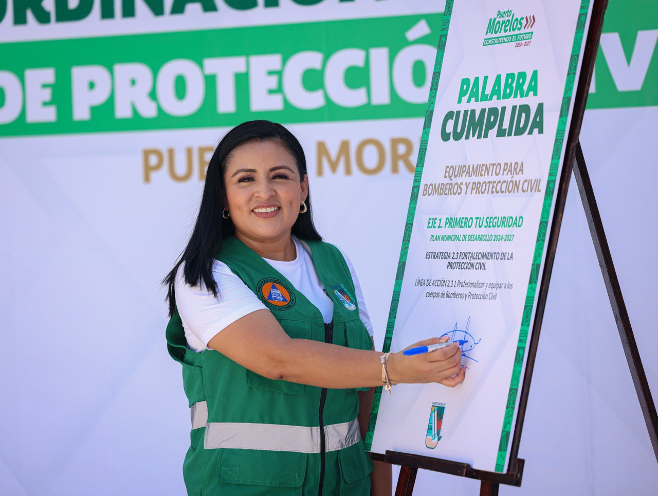 Puerto Morelos(Marcrix Noticias). – La presidenta municipal Blanca Merari Tziu Muñoz reafirmó su compromiso con la seguridad y el bienestar de la comunidad de Puerto Morelos al fortalecer a la Coordinación Municipal de Protección Civil y Bomberos con nuevas unidades y equipamiento especializado, en el marco del Día Nacional del Bombero.
