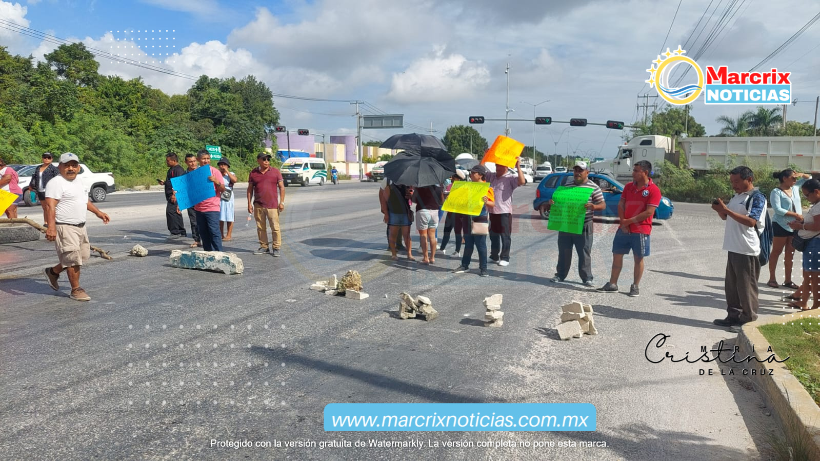 Cancún (Marcrix Noticias).- Habitantes de colonias irregulares de Cancún y la zona continental de Isla Mujeres bloquearon el mediodía la avenida José López Portillo en demanda de servicio de electricidad y la colocación de medidores de consumo de energía.