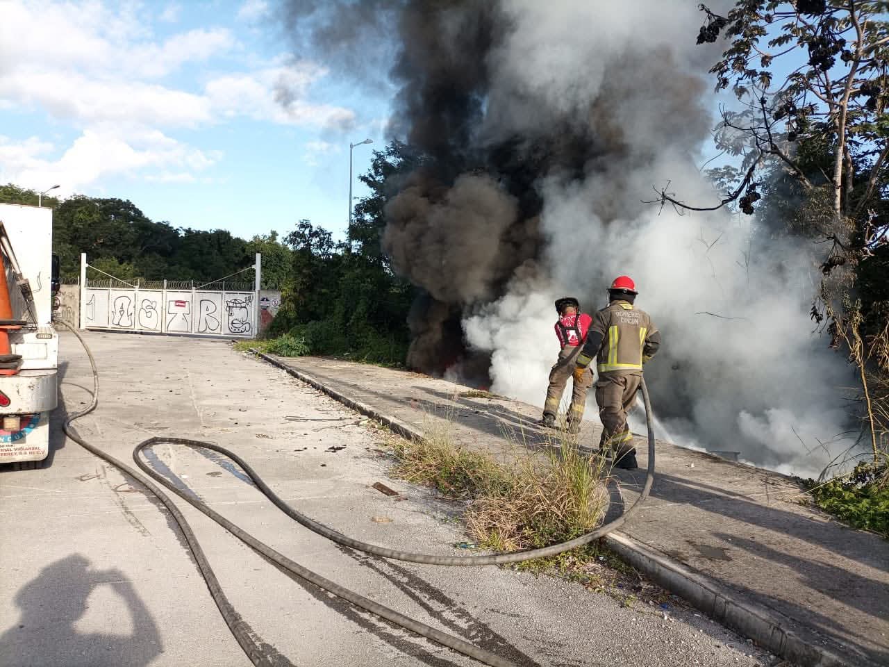 Elementos del Cuerpo de Bomberos de Cancún acudieron de inmediato y lograron controlar y sofocar las llamas antes de que se extendieran a viviendas o comercios cercanos.