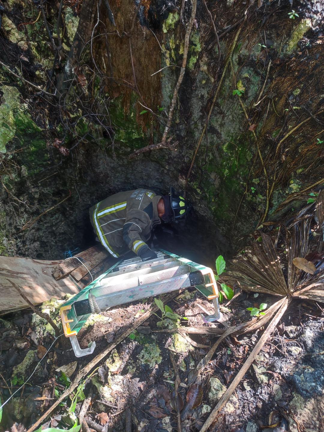 Los bomberos de Cancún rescataron a un perrito que cayó en un pozo de 5 metros de profundidad. No tuvo lesiones.