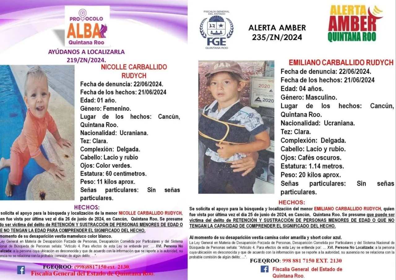 Cancún, Q. Roo (Marcrix Noticias).– La Fiscalía General del Estado (FGE) de Quintana Roo lemitió dos fichas por la desaparición de dos menores de edad, de origen ucraniano, que se extraviaron en Cancún.