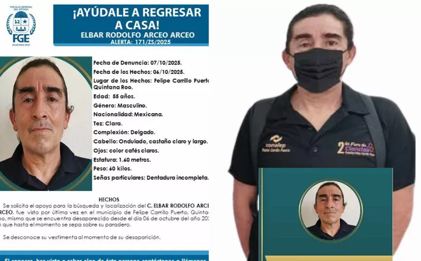 Ante la preocupación de familiares, colegas y alumnos, la Fiscalía General del Estado (FGE) de Quintana Roo activó la ficha de búsqueda número 171/ZS/2025 para dar con su paradero. Según la información oficial, Elbar Rodolfo Arceo Arceo, de 55 años, fue visto por última vez en el municipio de Felipe Carrillo Puerto.