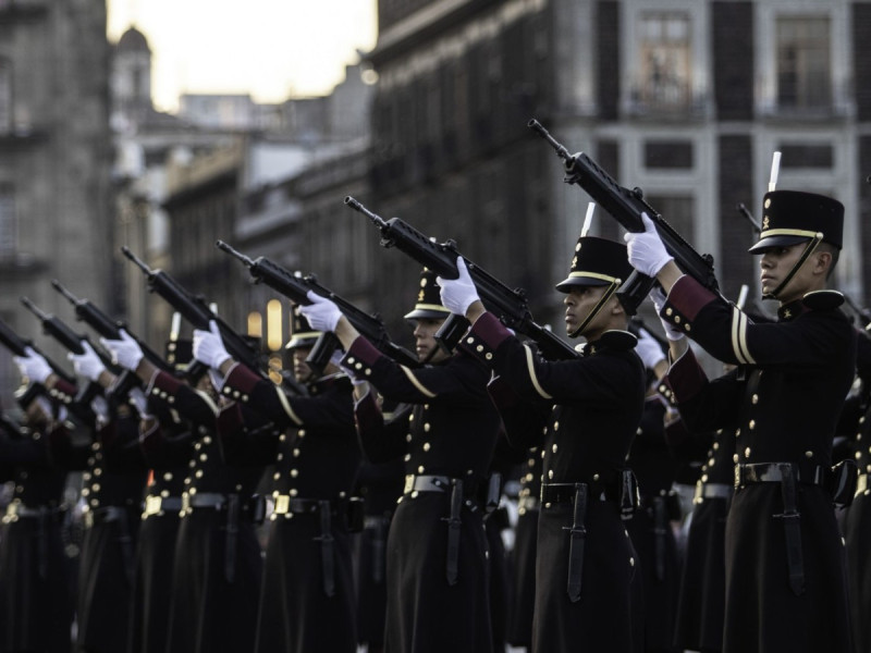 En homenaje al Heroico Colegio Militar, creado en 1823, un grupo de cadetes realizó una formación casi en el centro de la plaza y a las 18:04 realizaron el disparo de una salva de fusilería, que retumbó en todo el Zócalo capitalino.