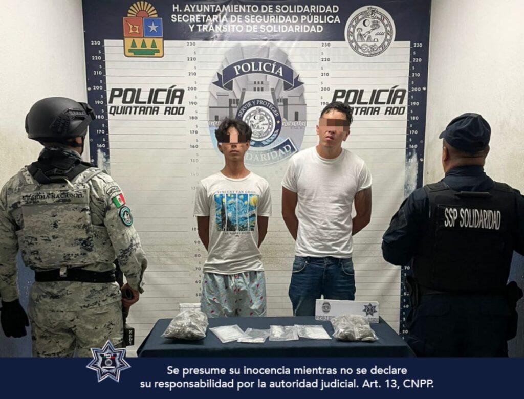 Playa del Carmen (Marcrix Noticias).- En el marco del operativo permanente de vigilancia y prevención en la colonia In House, la Policía Municipal de Solidaridad realizó la detención de dos personas en posesión de varias dosis de posibles narcóticos y en otro hecho aseguró a un sujeto por el posible delito de abuso sexual en contra de una mujer.
