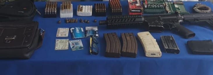 Los agentes se aproximaron y vieron a un masculino el cual portaba al parecer un arma de fuego, por lo que fue detenido; así mismo, al realizar una inspección a la unidad motriz, fueron localizados cargadores, así como cartuchos útiles de diversos calibres.