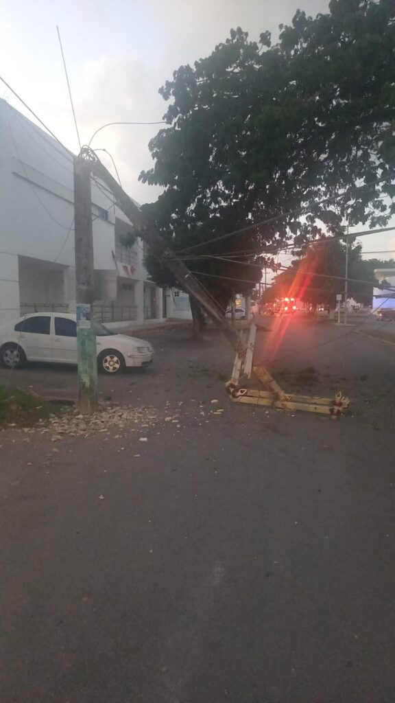 Cancún (Marcrix Noticias).- De nueva cuenta, un poste de la Comisión Federal de Electricidad (CFE) provocó pánico en habitantes del estado, al desplomarse con líneas de alta tensión en Chetumal.