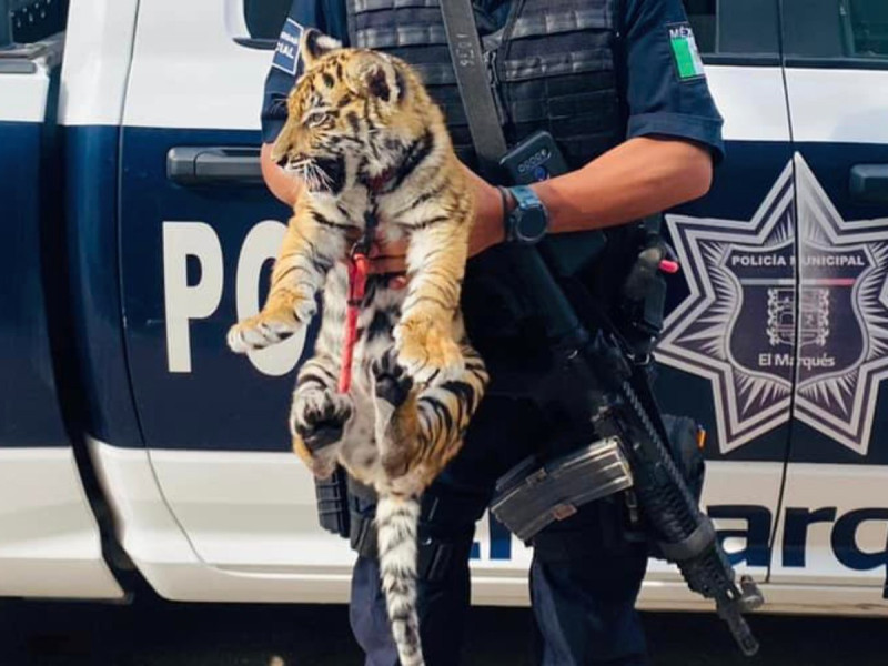 En poder de armas y de un cachorro de tigre, fue asegurada una pareja por policías en el estado de Querétaro.
