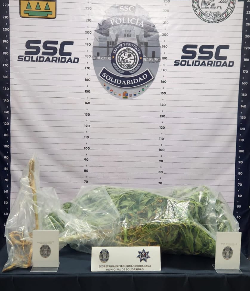 En otro hecho, la Policía Municipal de Solidaridad aseguró lo que parece una planta de marihuana en la colonia El Petén.
