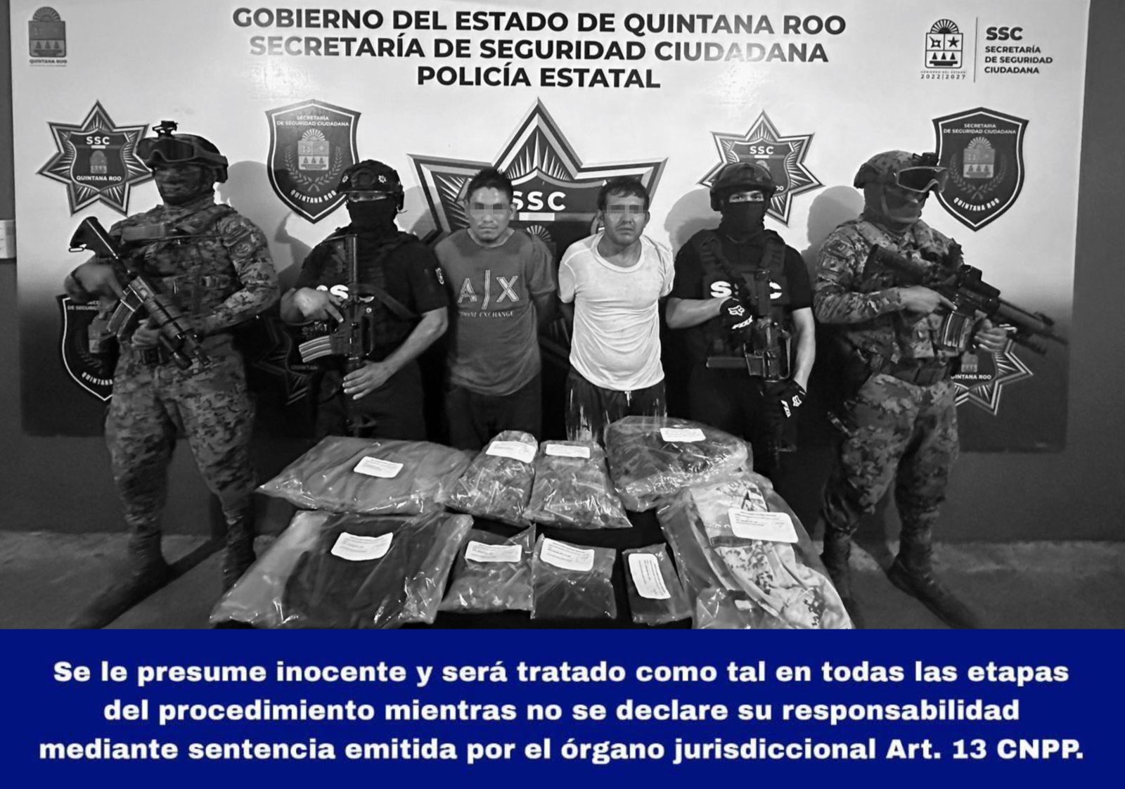 Al momento de la detención, arribaron elementos de la Secretaría de Marina para coadyuvar con las labores de seguridad.Los implicados responden a los nombres de Juan “N” y Mario “N”, ambos fueron llevados ante la Fiscalía Especializada en Combate al Delito de Narcomenudeo para la puesta a disposición.