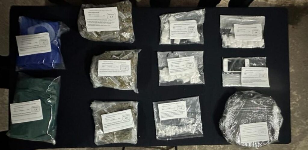 Al darse cuenta de los policías, estas personas abordaron el vehículo para darse a la fuga, sin embargo, se les cerró el paso y se procedió a la revisión correspondiente en la que les aseguraron: 100 bolsitas de plástico transparentes con vegetal de color verde con las características similares a la marihuana, 90 bolistas con fragmento sólido de color transparente con características similares al cristal y 15 bolsitas de plástico transparente tipo “ziploc” con fragmentos sólidos de color blanco con las características a la del crack.