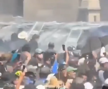Ciudad de México, (Marcrix Noticias).- Integrantes de la marcha de la Generación Z de este sábado derribaron las vallas del Palacio Nacional, en el Zócalo capitalino; sin embargo, fueron repelidos por granaderos, quienes utilizaron extintores para rociar a los manifestantes.
