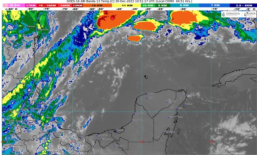 Cancún (Marcrix Noticias).- Para este viernes continúa la entrada de humedad del Golfo de México y del Mar Caribe hacia la región peninsular, mantendrán las temperaturas calurosas a bochornosas durante el día y frescas por la noche y madrugada, medio nublado con incremento de nublados durante el día, lluvias dispersas con chubascos ocasionales acompañados de actividad eléctrica, sobre algunas zonas del estado de Quintana Roo durante el día y noche.