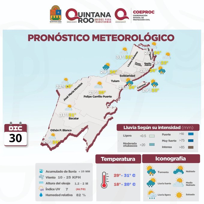 La Coordinación Estatal de Protección Civil recomienda consultar periódicamente la emisión de los boletines meteorológicos los cuales se publican y actualizan en las redes sociales y la página web de la Coordinación Estatal de Protección Civil y del Gobierno del Estado de Quintana Roo.