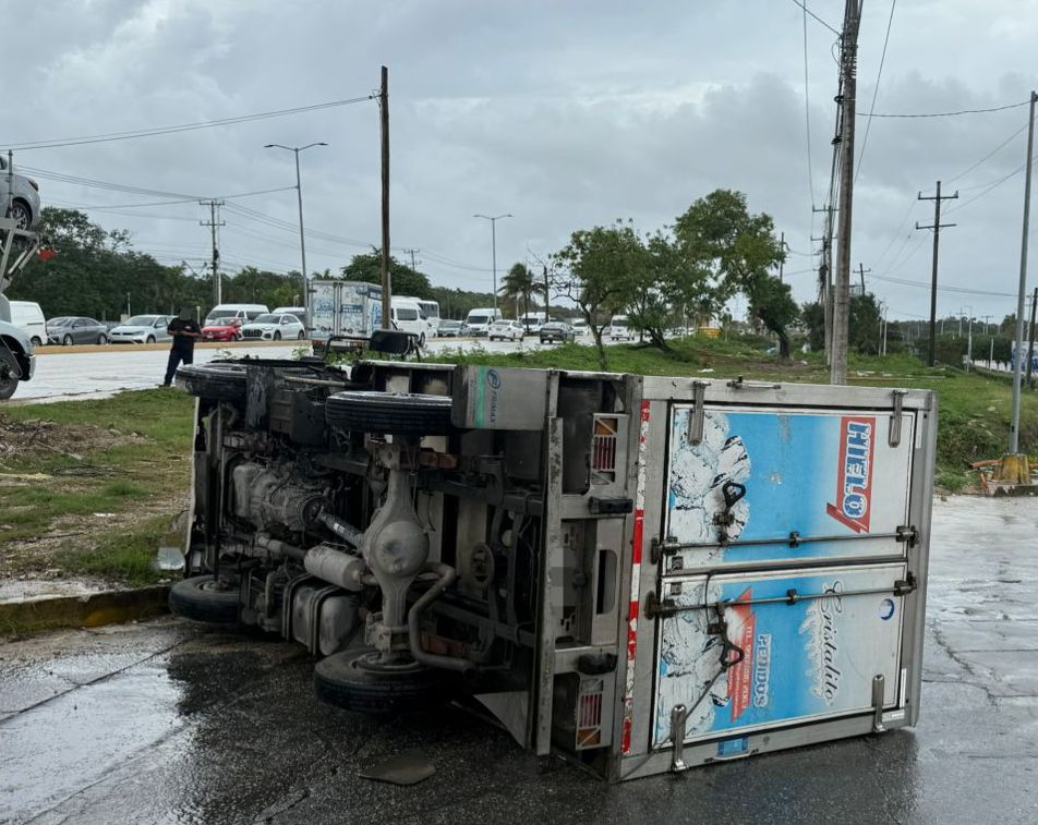 Indican que la volcadura ocurrió a la altura de la Universidad Tecnológica de Cancún.