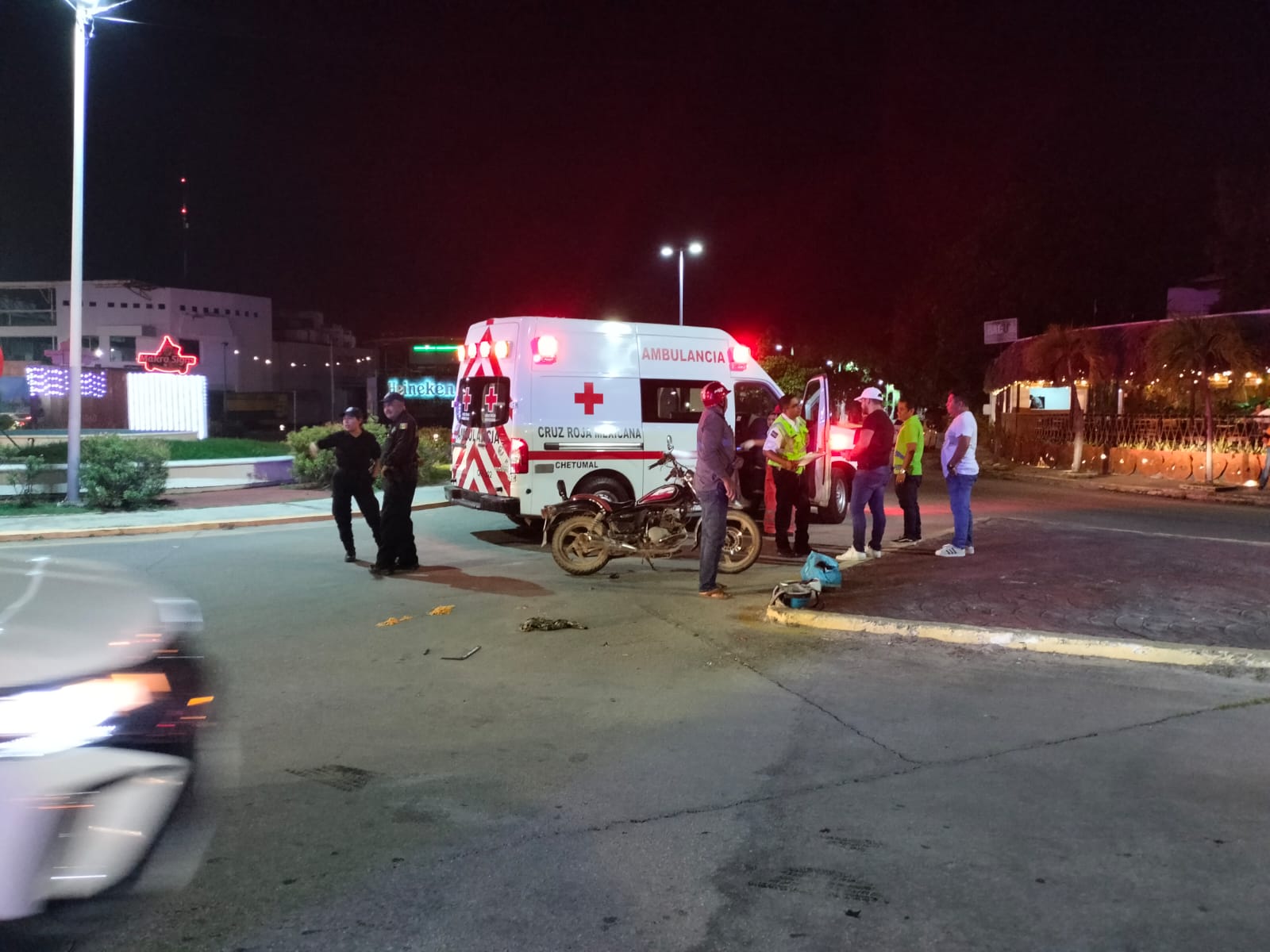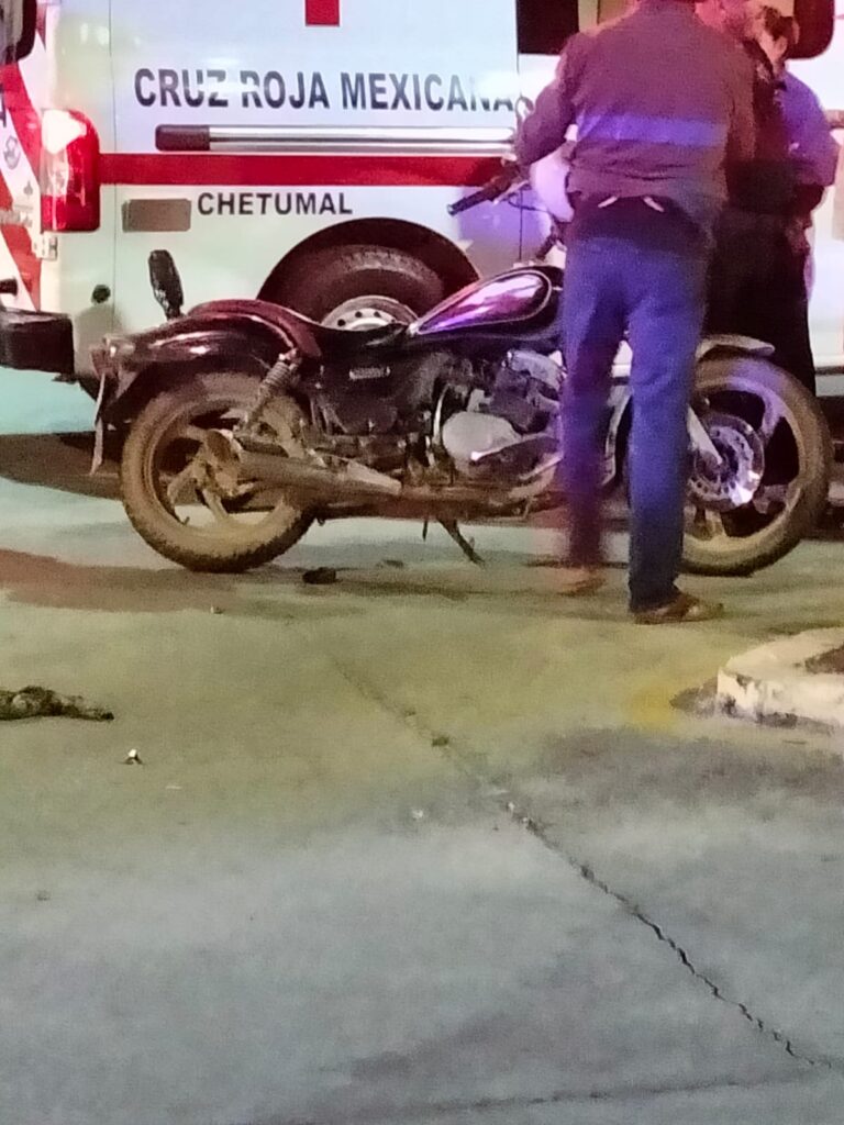 Chetumal (Marcrix Noticias).- Dos motociclistas fueron impactados por un vehículo Chevrolet Captiva color negro, cuando circulaban con preferencia en la glorieta de don Lázaro Cárdenas, en el boulevard Bahía de Chetumal esquina Calzada Veracruz.