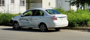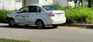 El automóvil color blanco Aveo, circulaba de oriente a poniente sobre la avenida Chicozapote y fue impactado en su costado izquierdo.