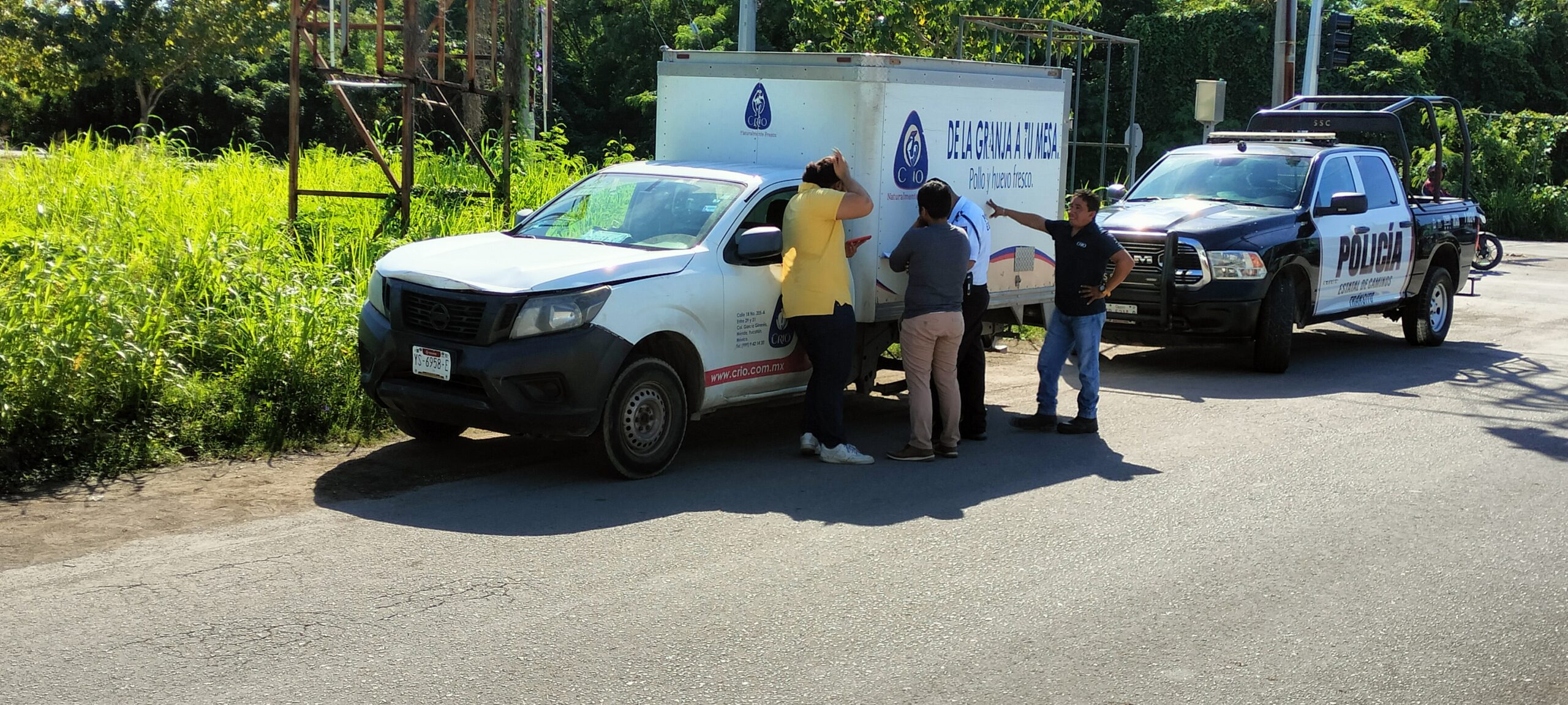 La policía de Tránsito llegó al lugar y determinó que la camioneta de huevos tuvo la culpa por lo que las aseguradoras de ambos vehículos llegaron a un acuerdo para reparar el daño.