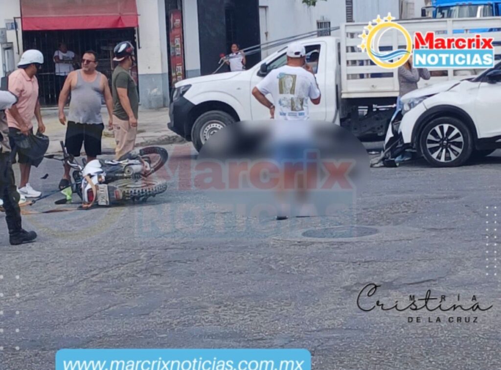 Al llegar a la intersección con Leona Vicario intentó cruzar, pero fue impactado por una camioneta Nissan blanca cuyo conductor, según testigos, no redujo la velocidad ni respetó el tope colocado en la vialidad.