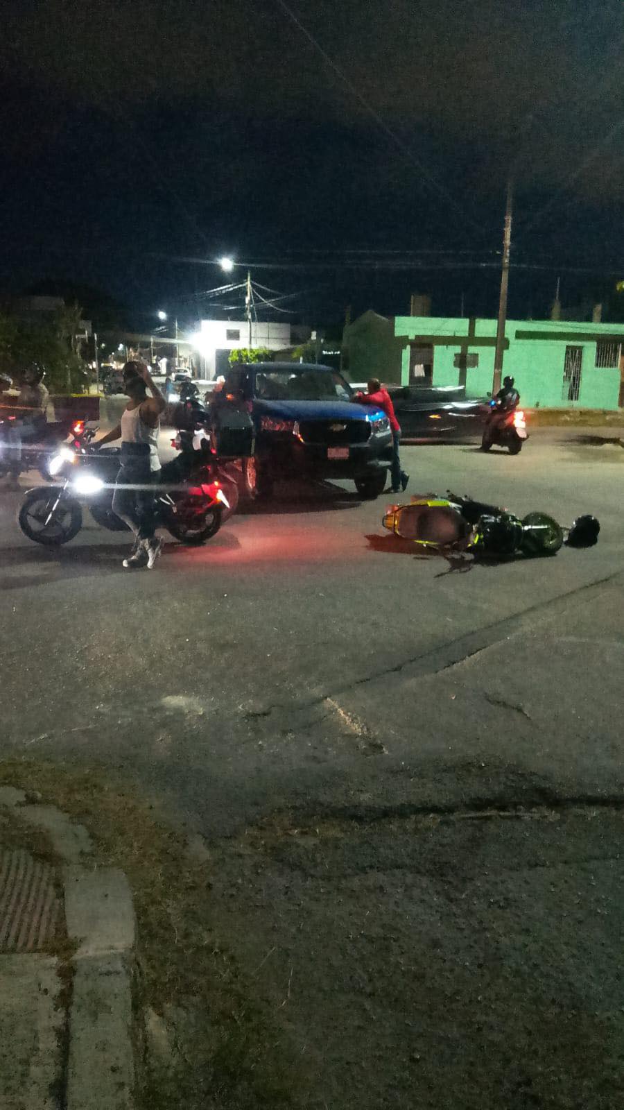 El motociclista circulaba en preferencia de vía sobre la avenida Erick Paolo Martínez y al llegar a la calle Alfredo Bonfil, una camioneta se vuela el alto y lo impacta.