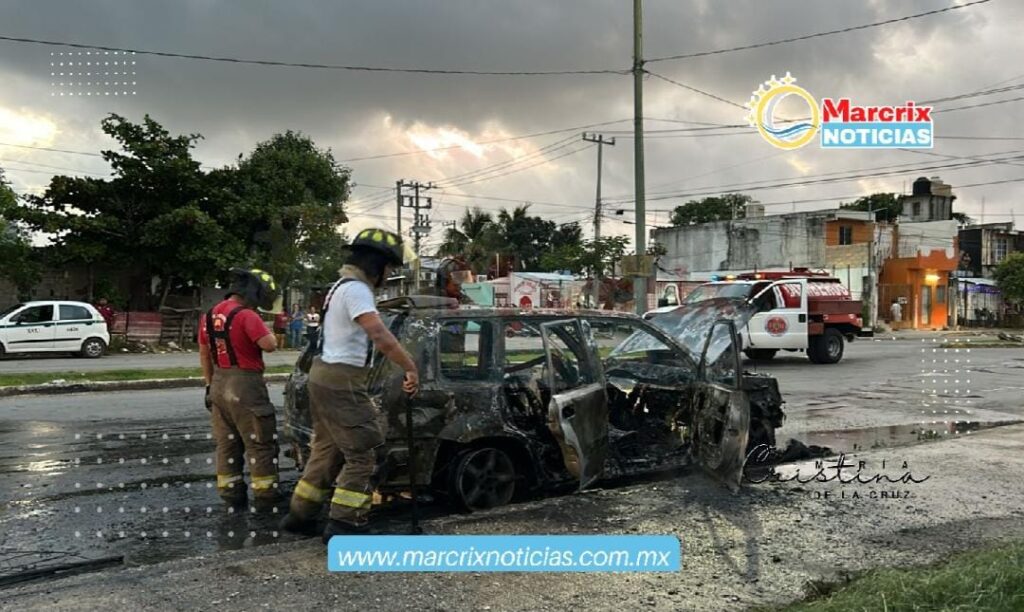 Una camioneta tipo X-Trail de color blanco fue consumida en su totalidad por el fuego, a pesar de los esfuerzos que hicieron los Bomberos por controlar el siniestro.