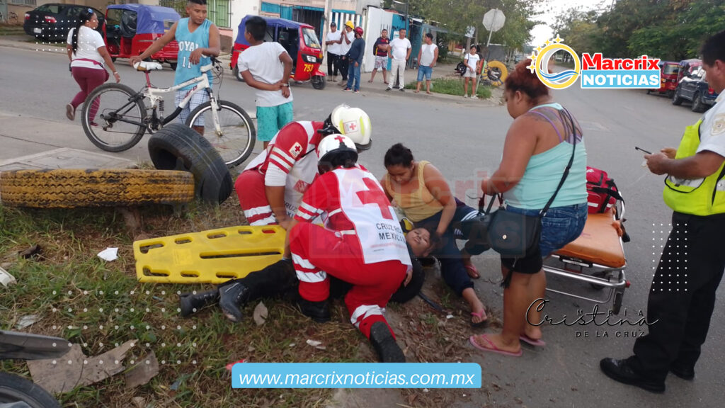Cancún (Marcrix Noticias).- La tarde de hoy la Cristal Hernández, conductora de una camioneta Trax LT 200 color gris, atropelló a un padre de familia y su hija que circulaban a bordo de una motocicleta en la calle Antonio Polo Rodríguez de la supermanzana 260 de Cancún.