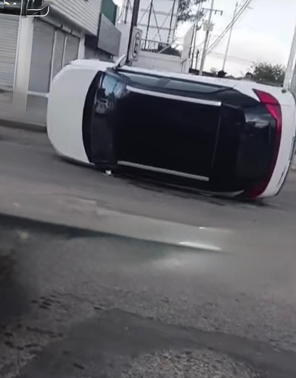 La camioneta con matrícula UTU-733-M del estado de Quintana Roo circulaba en la avenida Insurgentes de sur a norte y al llegar a la calle Palermo, giró hacia su izquierda, perdiendo el control y quedando volcada sobre su costado izquierdo.