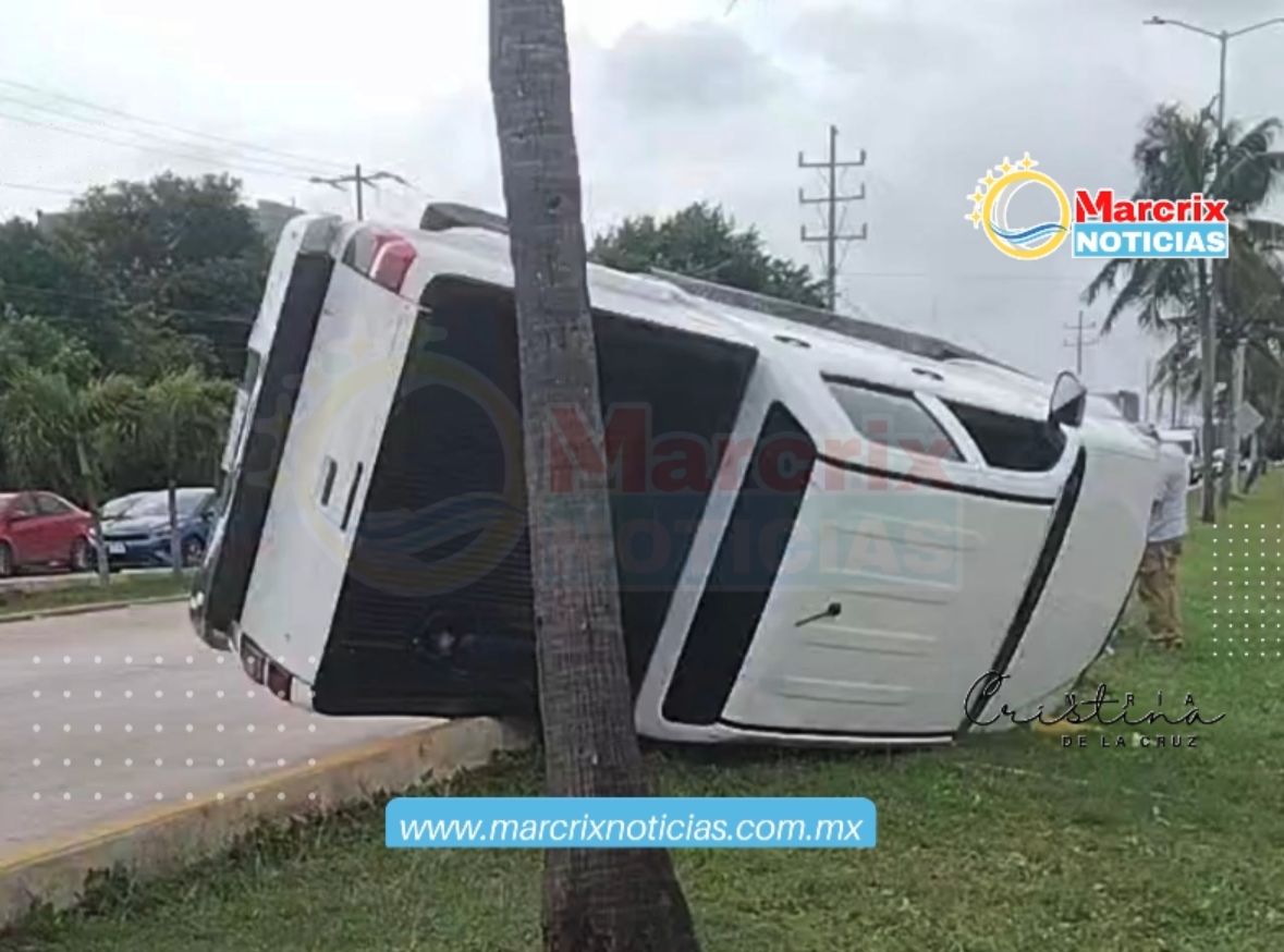 Cancún (Marcrix Noticias)Una camioneta volcó hoy por la tarde en el bulevar Luis Donaldo Colosio, a la altura de la supermanzana 4a, cuando el conductor perdió el control por el pavimento mojado y exceso de velocidad.