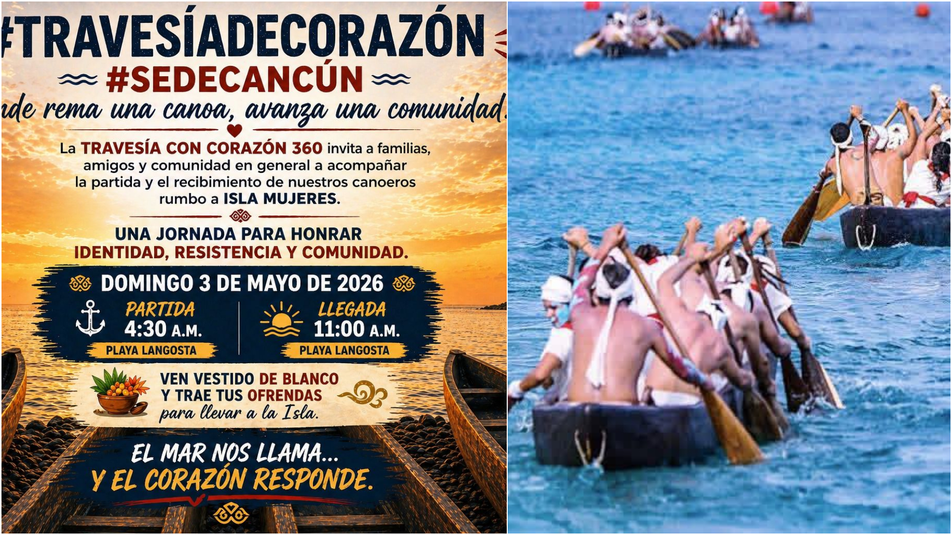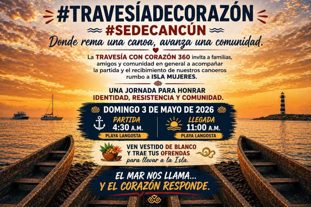 Cancún (Marcrix Noticias).– La comunidad de canoeros de Travesía con Corazón 360 – Sede Cancún realizará el próximo domingo 3 de mayo una remada de Cancún a Isla Mujeres, como respuesta a la suspensión de la tradicional Travesía Sagrada organizada por Grupo Xcaret.