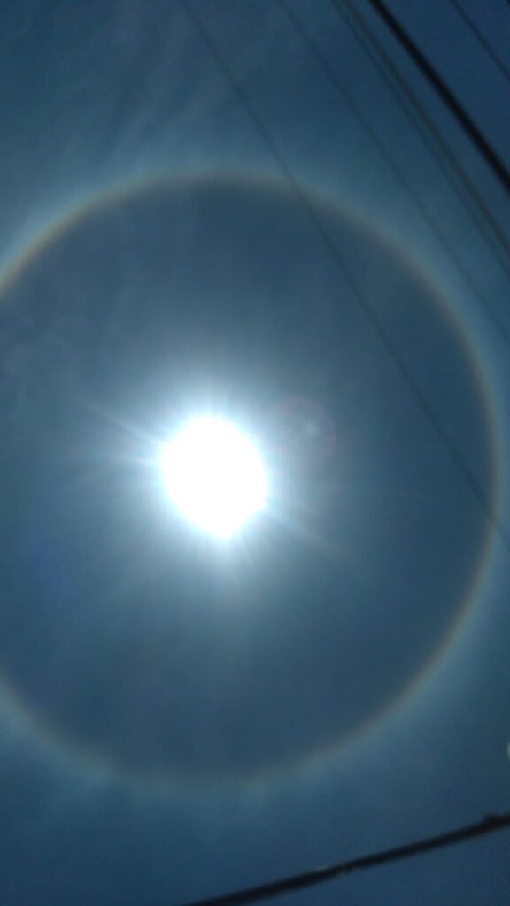 Según la Comisión Nacional del Agua (Conagua), el halo solar es un fenómeno visual que se origina por la refracción de la luz a través de cristales de hielo.