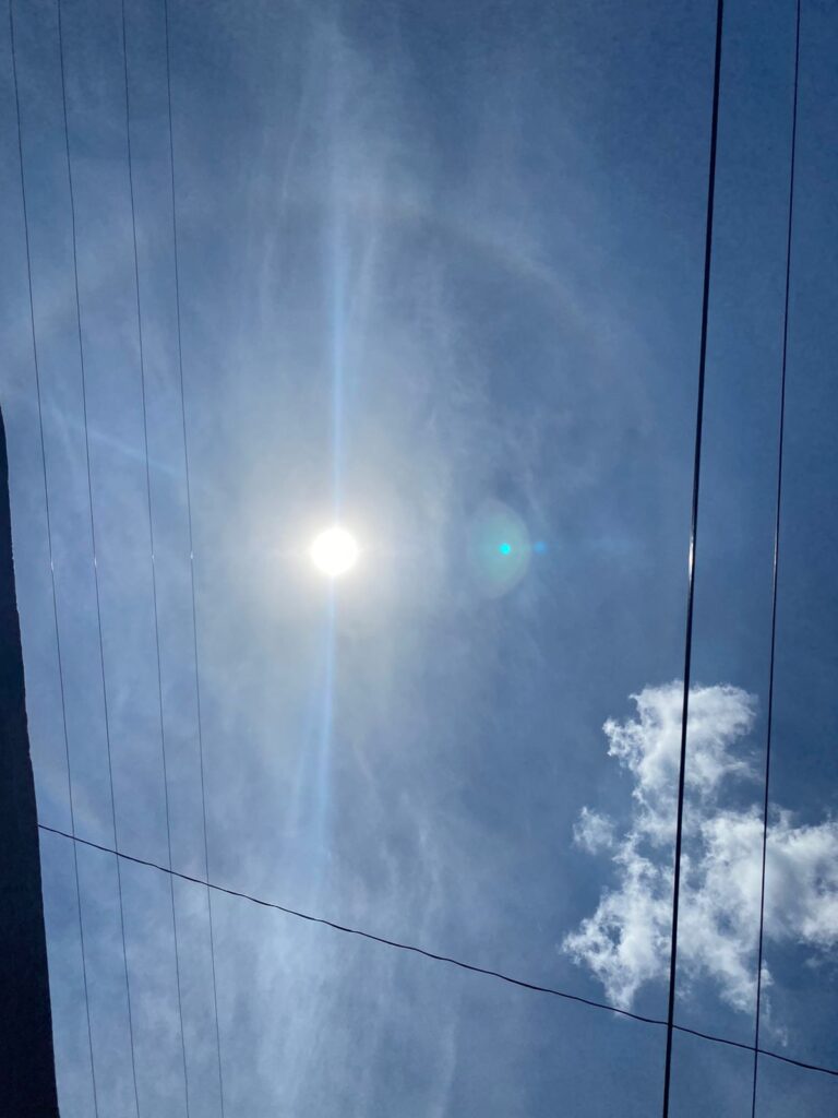 Cancún (Marcrix Noticias).— Alrededor del mediodía de este martes las cámaras de Marcrix Noticias captaron un aro alrededor del sol que podría tratarse de un halo solar.