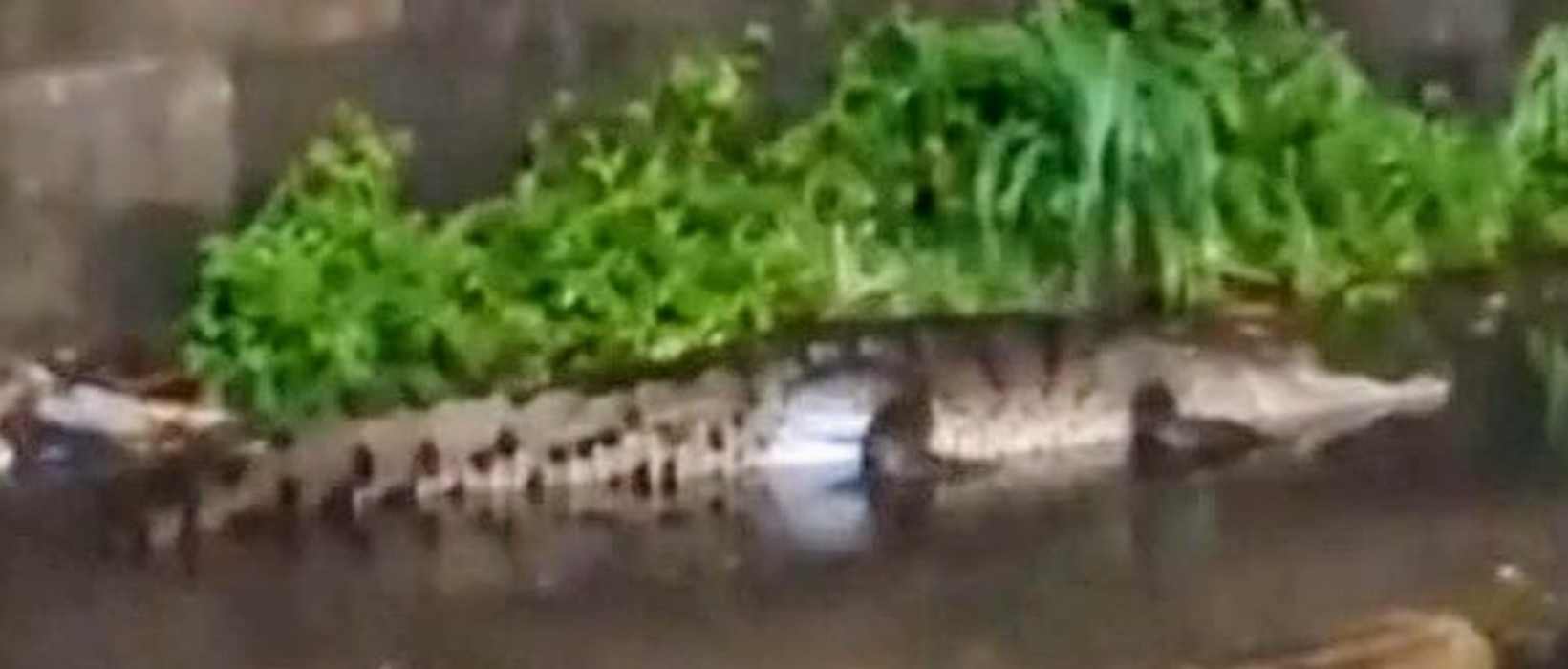 Habitantes de Chetumal captaron al cocodrilo saliendo del manglar durante la madrugada.