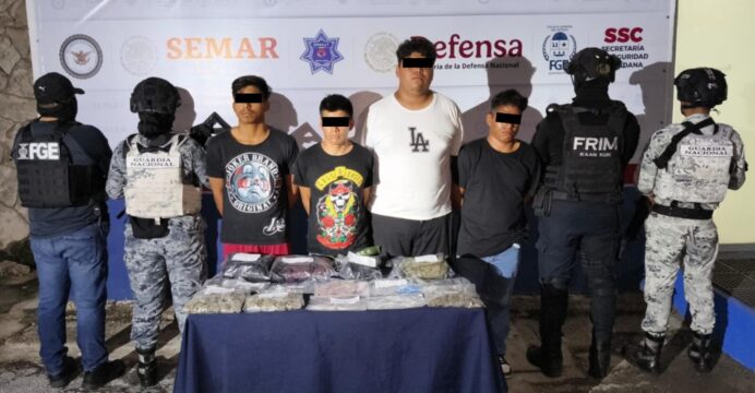 La FGE de Quintana Roo informó que Aroldo Domingo “N”, Gabriel “N”, Jesús Geovanni “N” y Alonso “N”, fueron detenidos por su probable participación en delitos de narcomenudeo.