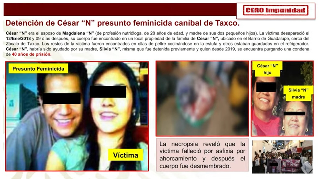 En conferencia mañanera encabezada por el Andrés Manuel López Obrador (AMLO) desde Palacio Nacional, Ricardo Mejía informó que el pasado 9 de julio del 2022, la Fiscalía de Guerrero, en coordinación con la Guardia Turística de Tijuana y la Fiscalía de Baja California, lograron cumplimentar la orden de aprehensión por el delito de feminicidio en agravio de Magdalena “N” por los hechos ocurridos en la ciudad de Taxco de Alarcón en el año 2018.