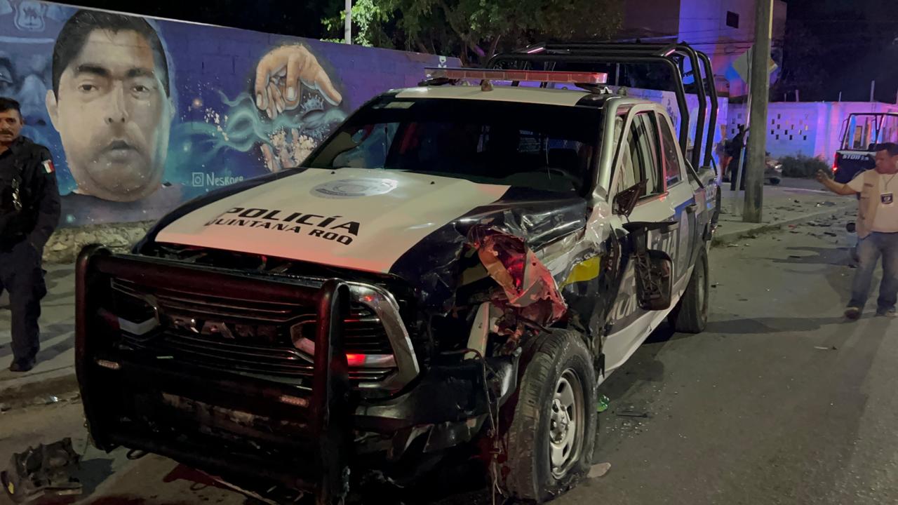 Carambola de patrullas en Cancún deja mujer herida y 2 policías lesionados