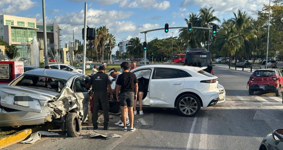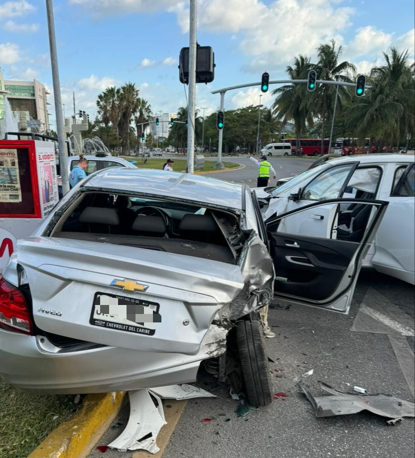 El choque entre 4 automóviles se registró durante la mañana de este domingo en el cruce de las avenidas Bonampak con Xcaret.